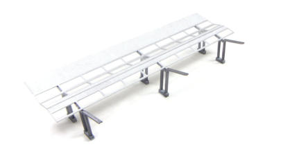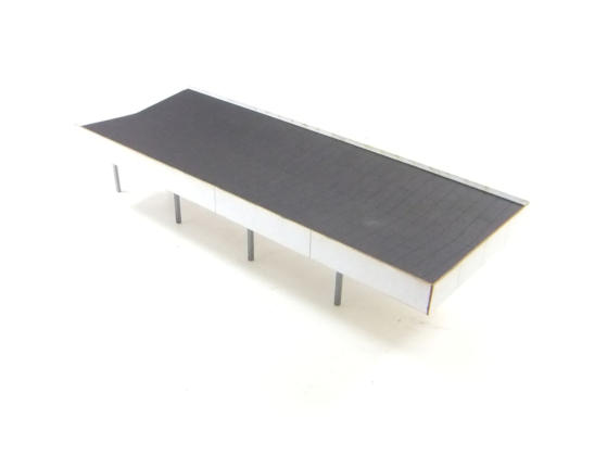 Die Montage der Bauteile H0162004 U.H087005/H087006 ist natürlich auch leicht gehalten. Führen Sie die Dachstrebenin die Bahnsteigstütze ein .Platzieren Sie die Stützen mit einem korrekten Abstand wie Sie es wünschen .Eine fixierung kann erfolgen. Sollten Sie noch Zubehör nutzen wollen, montieren sie dies bitte vor der ver-klebung. Dieses Bahnsteigdach ist für eine verlegung auch in Kurven ausgelegt/geeignet. Je Nach an-forderungen, nutzen sie bitte das korrekte BahnsteigdachFolgen Sie bei der Dachplattenmontage Schritt 7.