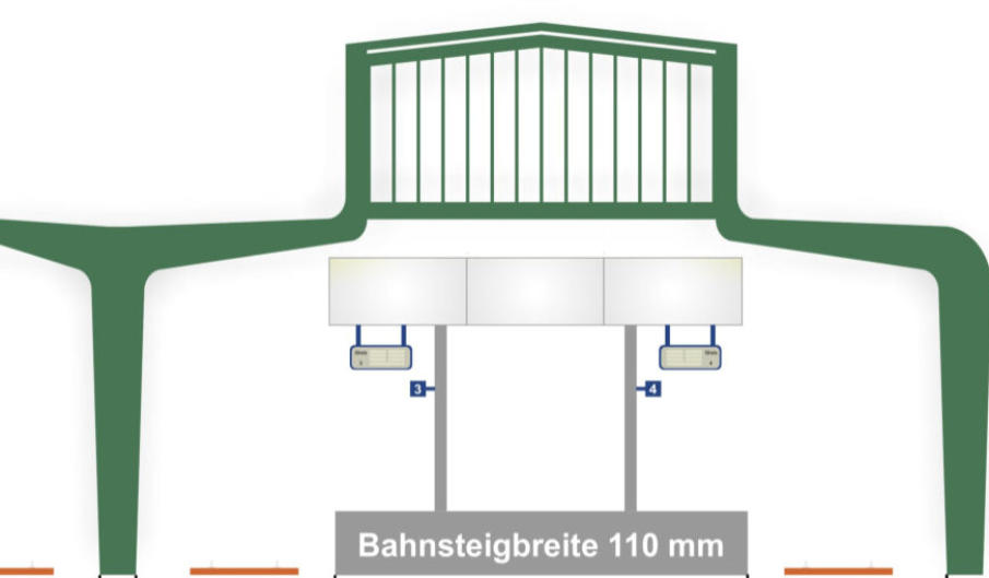 Ermitteln Sie Ihre wunschPosition wo die Bahnsteigstützen angebracht werden sollen.Ich emfehlen auf eine Länge von 292 mm mindestens 3 Bahnsteigstützen. Montage Tipp: Messen Sie 73,5 mm / 36,5 mm vom Bahnsteigrand zur Mitte hin ( 1. Stütze). nun von diesem Punkt aus 73,5 mm / 109,5 mm zur nächsten Stütze. Montieren Sie nun mittig an den ausgemessenen Punkten die bahnsteigstützen.So erhalten Sie einen gleichmässigen abstand der stützenund das Bahnsteigdach ist immer ordentlich verbaut.
