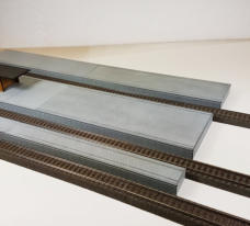 Streichen Sie nun Klebstoff auf die Ablagekante auf und verkleben Sie diese dann mit dem Bahnsteigbelag.Achtung: Haben Sie die Bahnsteigkanten auf den Untergrund aufgeschraubt oder verklebt ist nach der Trocknung ein herankommen nicht mehr möglich!